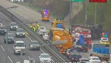 25톤 트럭 전도 사고, 음식물 쓰레기 쏟아져 정체