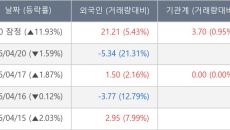 [서울=뉴스핌] 로보뉴스 = 21일 13시 30분 현재 세아메카닉스(396300)는 외국인과 기관이 각각 21.21 만 주,- 31분전