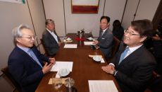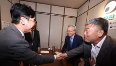[포토]노사정 오찬 간담회에 앞서 인사 나누는 김영훈 고용부 장관-최진식 회장-김동명 위원장