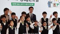 [포토] 장애어린이와 기념촬영하는 김민석 총리