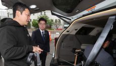 장애인 콜택시 관계자 설명 듣는 정원오 후보