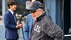 김경문 감독 ‘선수들 훈련 지켜보며’[포토]