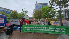 "수라갯벌 사수"…새만금국제공항 반대단체, 전북도청 앞 배수진