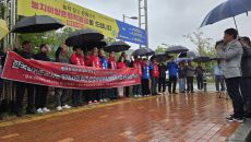 [평택=뉴스핌] 이성훈 기자 = 경기 평택호 태양광 설치 반대 범시민대책위원회가 20일 한국농어촌공사 평택지사 앞에서 한국농어- 19시간전