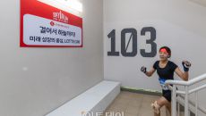 19일 서울 송파구 롯데월드타워에서 열린 수직 마라톤 대회 '2026 롯데월드타워 스카이런' 행사에서 한 참가자가 103층을- 2026-04-19 17:09