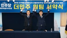 제9회 전국동시지방선거 더불어민주당 제주지사 후보 자리를 놓고 박빙 승부를 펼쳤던 위성곤·문대림 의원이 ‘원팀’을 선언했다.- 2026-04-19 14:02