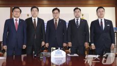 여야 원내대표 회동 전 기념촬영