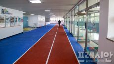 영암실내체육관 복도에 240m 길이 탄성트랙 설치