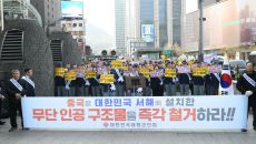 향군 "中, 서해 인공구조물 즉각 철거하라"…대사관 인근서 집회