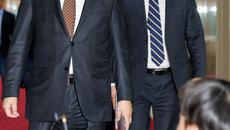 (서울=뉴스1) 안은나 기자 = 국민의힘 권성동(왼쪽), 더불어민주당 박찬대 원내대표가 31일 오후 서울 여의도 국회의장실에서- 2025-03-31 18:37
