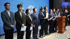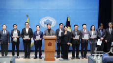 (서울=뉴스1) 이광호 기자 = 더불어민주당 전정권정치탄압대책위원회 의원들이 31일 오후 서울 여의도 국회 소통관에서 검찰이- 2025-03-31 14:04