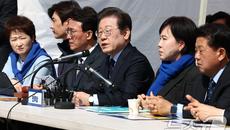(서울=뉴스1) 김민지 기자 = 이재명 더불어민주당 대표가 31일 오전 서울 종로구 경복궁 앞 천막당사에서 열린 최고위원회의에- 2025-03-31 11:59