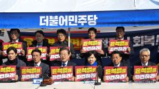 [헤럴드pic] 구호 외치는 더불어민주당 지도부
