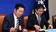 아시아투데이 송의주 기자 = 정청래 더불어민주당 대표와 한병도 원내대표가 19일 국회에서 열린 최고위원회의에 참석하고 있다.- 17시간전