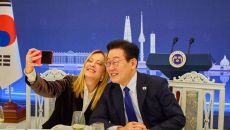 李대통령, 멜로니 伊총리에 ‘분홍 Z플립’ 깜짝 선물…즉석에서 함께 ‘셀카’도
