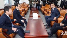 더불어민주당 한병도 원내대표와 천준호 원내운영수석부대표, 국민의힘 송언석 원내대표와 유상범 원내운영수석부대표가 19일 서울 여- 2026-01-19 14:08