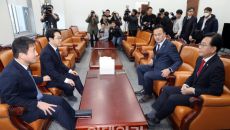아시아투데이 송의주 기자 = 더불어민주당 한병도·국민의힘 송언석 원내대표가 19일 국회에서 만나 현안 관련 논의를 하고 있다.- 2026-01-19 13:58