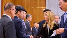 대한민국 정부 관계자와 악수하는 조르자 멜로니 총리