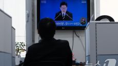 이재명 대통령 신년회견 지켜보는 국민의힘 당직자