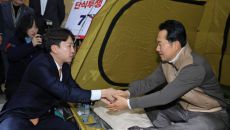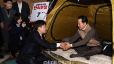 아시아투데이 송의주 기자 = 장동혁 국민의힘 대표(오른쪽)가 21일 국회 로텐더홀에 마련된 단식 농성장에서 이준석 개혁신당 대- 22시간전