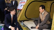 [포토]장동혁 단식투쟁 농성장 찾은 이준석
