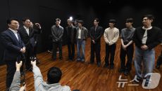 (서울=뉴스1) 청사사진기자단 = 보이그룹 엔하이픈 21일 오후 용산구 하이브에서 김민석 국무총리를 기다리고 있다. 2026.- 11시간전