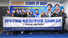 한국노총 서울지역본부가 13일 박준희 서울 관악구청장 예비후보(현 구청장)에 대한 지지를 선언했다. 박 후보 측에 따르면 김기- 2026-04-13 17:06