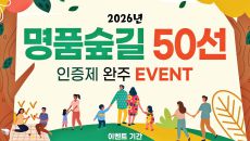 산림청은 숲길을 활용한 국민 여가와 지역경제 활성화를 위해 '2026년 명품숲길 50선 완주 인증제'를 오는 11월 15일까지- 2026-04-13 13:36