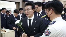 [서울=뉴시스]이인준 기자 = 김민석 국무총리가 13일 전남 완도군의 냉동창고 화재 현장 순직 소방관을 조문하고, 고인의 헌신- 2026-04-13 11:12