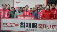 [보은=뉴시스]연종영 기자 = 단수 공천을 받은 국민의힘 최재형 충북 보은군수가 16일 재선 도전을 선언하고 주요정당 후보자- 2026-04-16 11:39