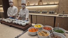 (영종도=연합뉴스) 임성호 기자 = "비행편을 기다리면서, 5성급 호텔 그랜드 하얏트 인천의 현직 셰프들이 즉석에서 만드는 신- 6분전