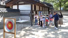 [서=뉴스핌] 최지환 기자 = 1일 오후 서울 종로구 운현궁에서 열린 '한가위 민속한마당'을 찾은 어린이들이 활쏘기 체험을 하- 2023-10-01 15:12