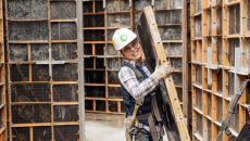 남자들이 '원숭이' 보듯 쳐다봤지만, 보란듯이 합판을 들어 올렸다
