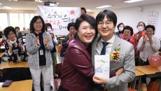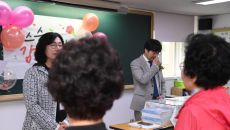 스승의 날인 15일 오후 서울 마포구 일성여자고등학교 1학년 2반에서 졸업생이 직접 쓴 시집을 고형구 담임선생님에게 드리고 포- 2025-05-15 15:34