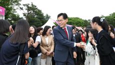 이기재 양천구청장이 15일 서울 양천구 양천구청 일대에서 열린 'Y교육박람회 2025' 에서 학생들과 인사를 나누고 있다. 양- 2025-05-15 15:16