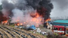 (양주=연합뉴스) 최재훈 기자 = 15일 오전 경기 양주시에 있는 중고 배터리 매입·수출 업체 공장에서 불이나 약 9시간 만에- 2025-05-15 15:07