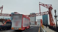 부산 영도대교 지나던 유세차량, 높이 제한 시설물에 ‘쾅’