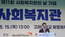 오세훈 서울시장이 15일 서울 성북구 고려대학교 화정체육관에서 열린 '서울시 사회복지관의 날' 행사에 참석, 축사를 하고 있다- 2025-05-15 14:14