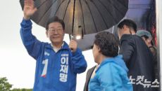 폭우 속 광양서 지지 호소하는 이재명 후보