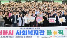 ‘제11회 서울시사회복지관의 날 기념행사’ 참석자들과 기념촬영하는 오세훈 서울시장