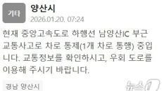 (양산=뉴스1) 임순택 기자 = 20일 오전 경남 양산시 중앙고속도로 지선에서 화물차 사고가 발생해 출근길 극심한 차량 정체가- 22분전