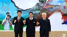 (영동=뉴스1) 장인수 기자 = 충북 영동·충남 금산·전북 무주군이 올해 공동 관광마케팅을 추진한다. 정영철 영동군수·박범인- 6시간전