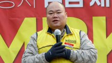 [서울=뉴스핌] 류기찬 기자 = 안수용 민주노총 서비스연맹 마트산업노조 홈플러스지부 지부장이 21일 오전 서울 종로구 MBK- 2시간전