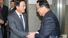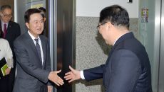 (대전=뉴스1) = 이장우 대전시장과 김태흠 충남도지사가 21일 대전시청에서 대전·충남 행정통합 관련 긴급 회동에 앞서 인사하- 2시간전