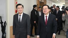 (대전=뉴스1) = 이장우 대전시장과 김태흠 충남도지사가 21일 대전시청에서 대전·충남 행정통합 관련 긴급 회동을 앞두고 이동- 2시간전