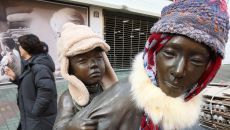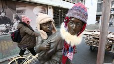 (대구=뉴스1) 공정식 기자 = 동장군이 기승을 부린 23일 오후 대구 중구 종로 약령시 인근에 세워진 '엄마의 마음' 조각상- 13시간전