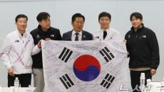 국대 지도자 사인 담긴 태극기