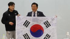 지도자 사인담긴 태극기 선물받은 정청래