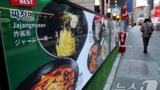 (서울=뉴스1) 이광호 기자 = 23일 서울 중구 명동에서 시민들이 한식당 앞을 지나가고 있다. 한국소비자원 가격정보포털 참가- 17시간전