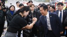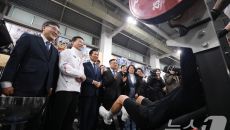 (진천=뉴스1) 김용빈 기자 = 정청래 더불어민주당 대표가 23일 충북 진천선수촌 웨이트트레이닝장에서 훈련하는 선수들을 격려하- 17시간전